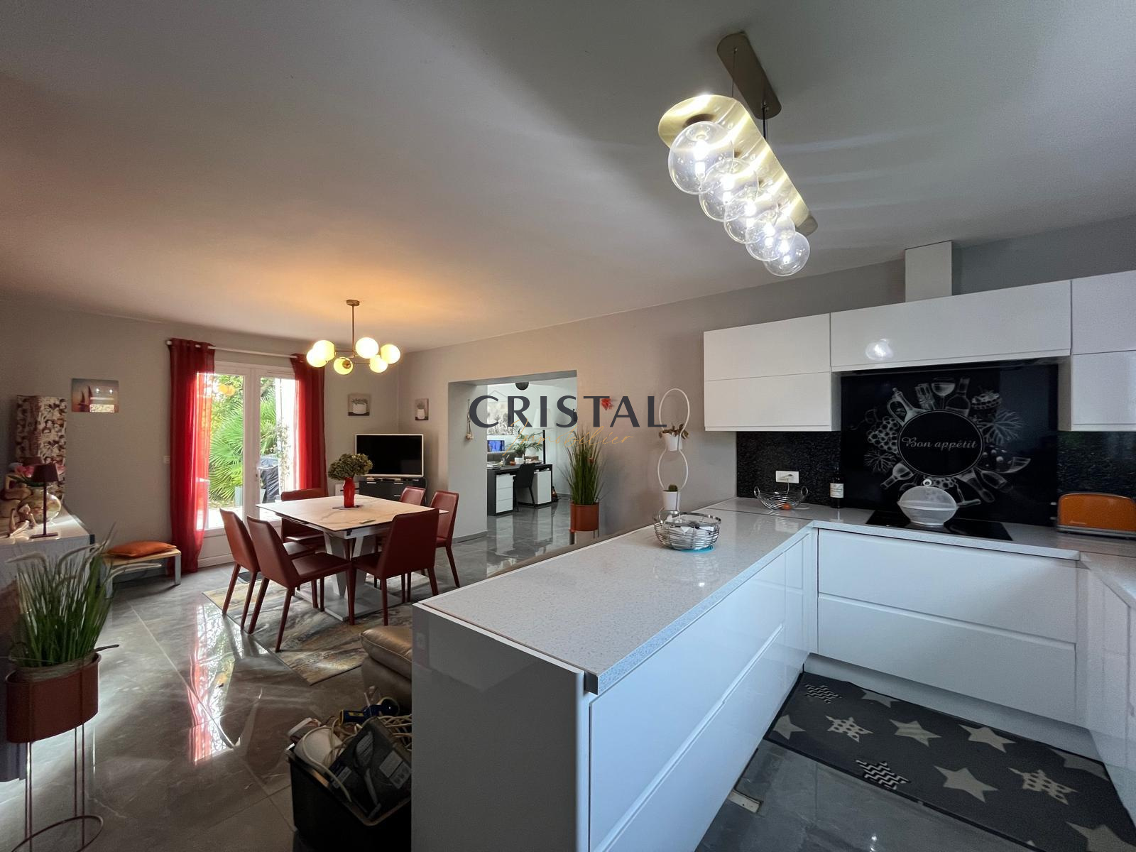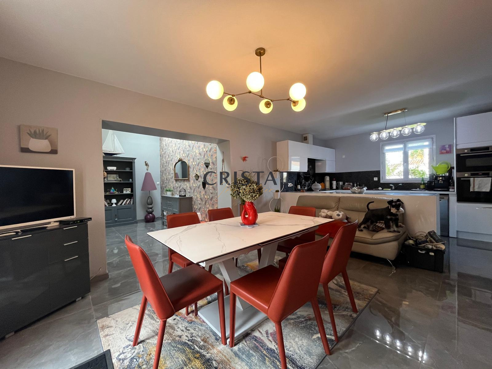 En toute transparence, CRISTAL Immobilier vous présente cette maison entièrement de plain pied, d'environ 98m2 habitables, située à 800m du marché du parc, comprend : une pièce de vie lumineuse, un séjour avec cuisine ouverte, 3 chambres, une salle d'eau et WC indépendant.